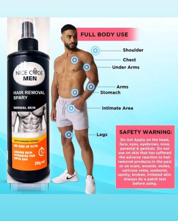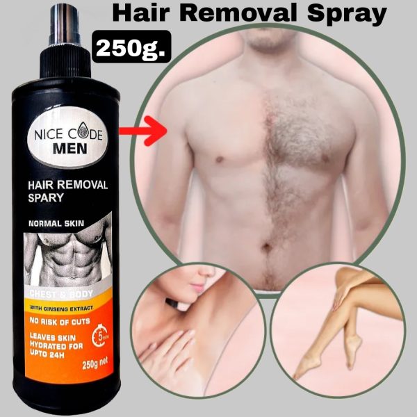 NICE CODE Hair removal sprays are topical products designed to eliminate unwanted hair from various parts of the body. They typically contain chemical agents that break down the protein structure of hair, allowing it to be easily wiped away. Here’s a detailed description of hair removal sprays: